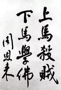 第二天,周恩来来到上封寺。他高度评价了僧人们的爱国热情,又提出不必成立僧军的主张。谈话将要结束时,丘赞请周恩来题词。周恩来没有推辞,接过笔默想片刻,洋洋洒洒地在宣纸上写了八个大字“上马杀贼,下马学佛。”丘赞望着题词,沉吟了一会道:“弟子斗胆请教,先生题词‘杀贼’与‘学佛’联系在一起,于教义是否相符?”