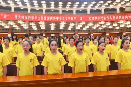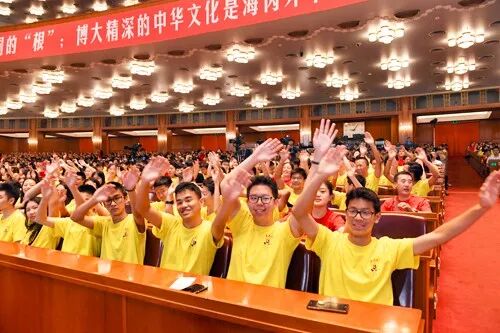 7月25日,来自40个国家和港澳台地区的3000余名青少年欢聚人民大会堂,参加第九届海外华裔及港澳台地区青少年“中国寻根之旅”夏令营北京集结营开营式。中共中央书记处书记、中央统战部部长尤权出席,向营员颁授营旗并讲话。